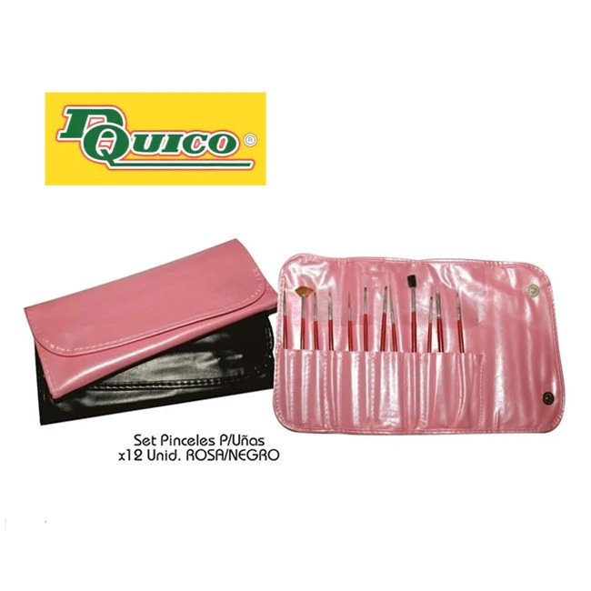 QUICO SET DE PINCELES PARA UÑAS ROSA/ NEGRO