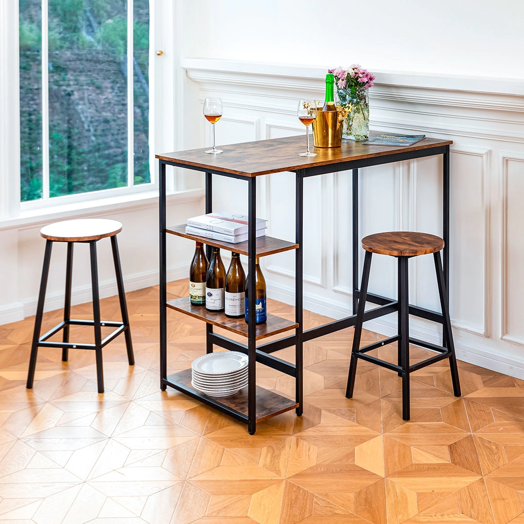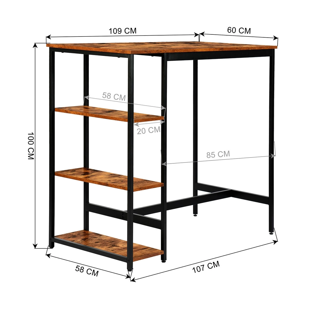Esta mesa de bar con 3 estantes rústicos de madera de ingeniería marrón agrega un toque industrial a su comedor. ¡Disfruta de delicias en un ambiente elegante!