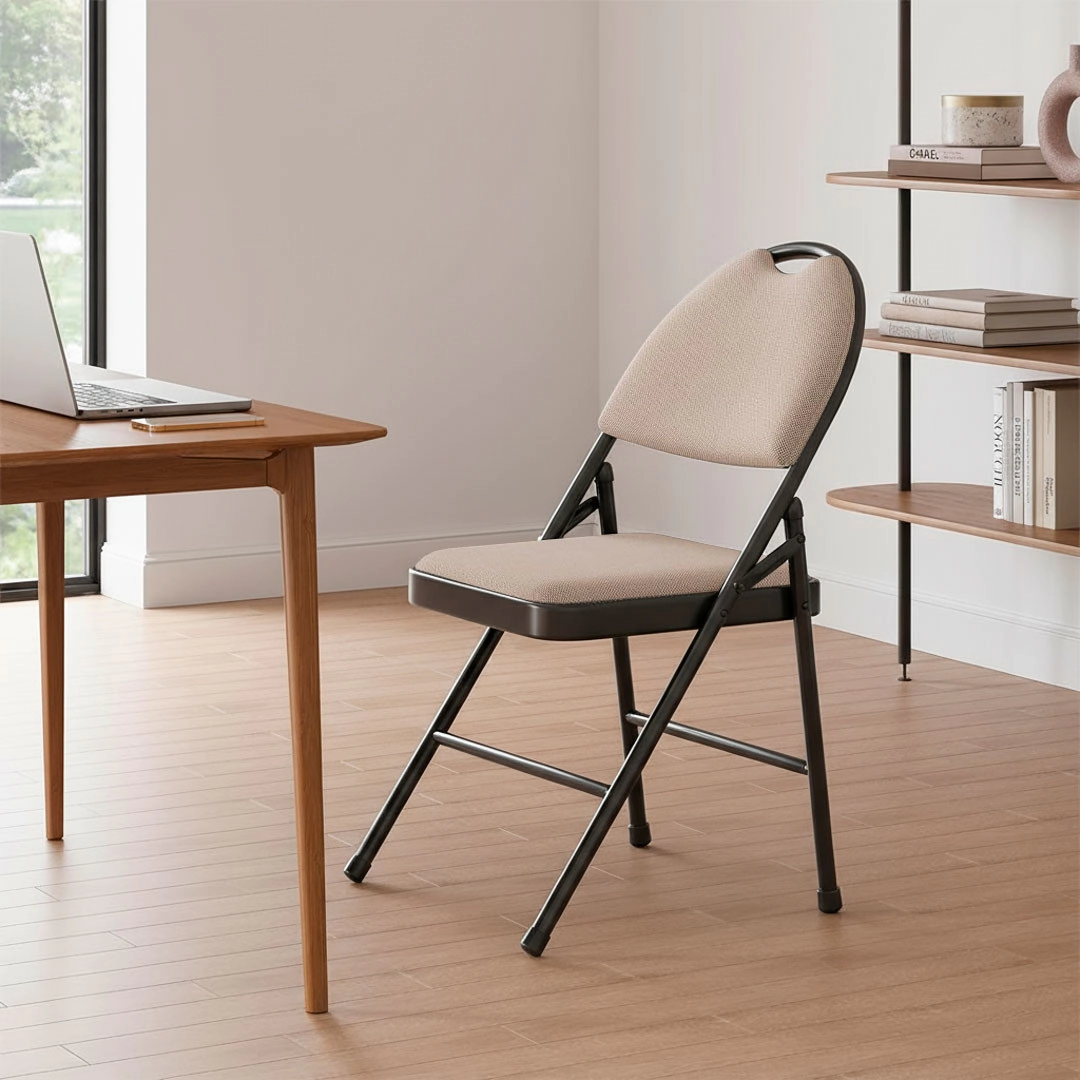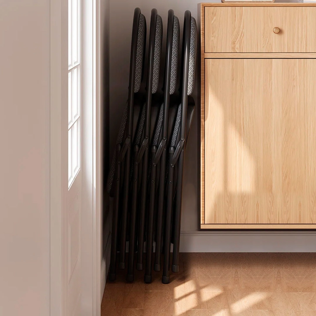 Esta silla plegable cuenta con patas de acero resistente y un diseño triangular resistente, que proporciona una excelente estabilidad y durabilidad. Las almohadillas antideslizantes proporcionan protección del suelo y ejercicio silencioso.
