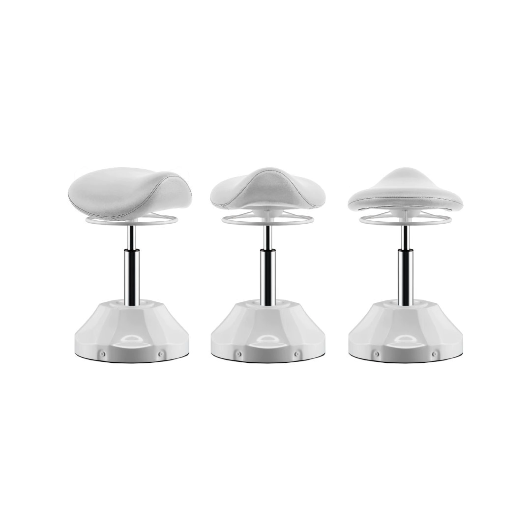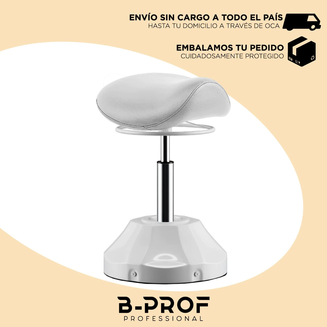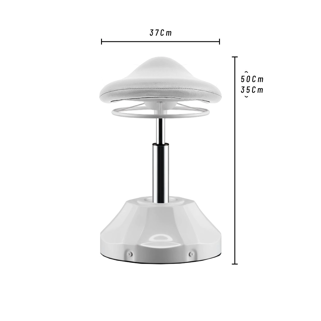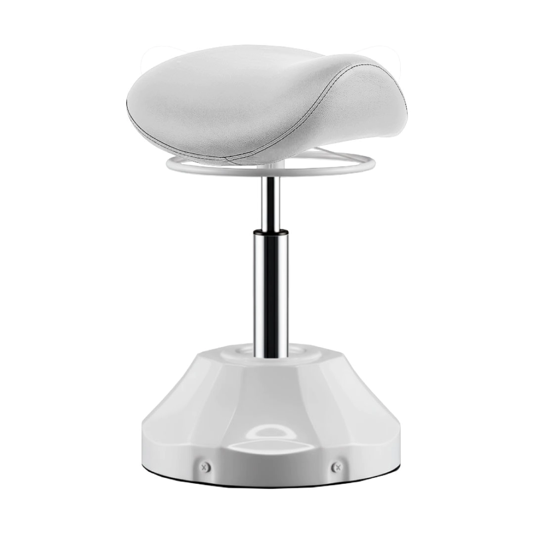Este taburete ergonómico presenta un diseño moderno y funcional, con un asiento acolchado, tapizado para mayor comodidad. Cuenta con un ajuste de altura mediante un pistón de gas, ideal para adaptarse a diferentes usuarios. Incluye una base robusta y estable, perfecta para entornos de trabajo o estudio prolongado.