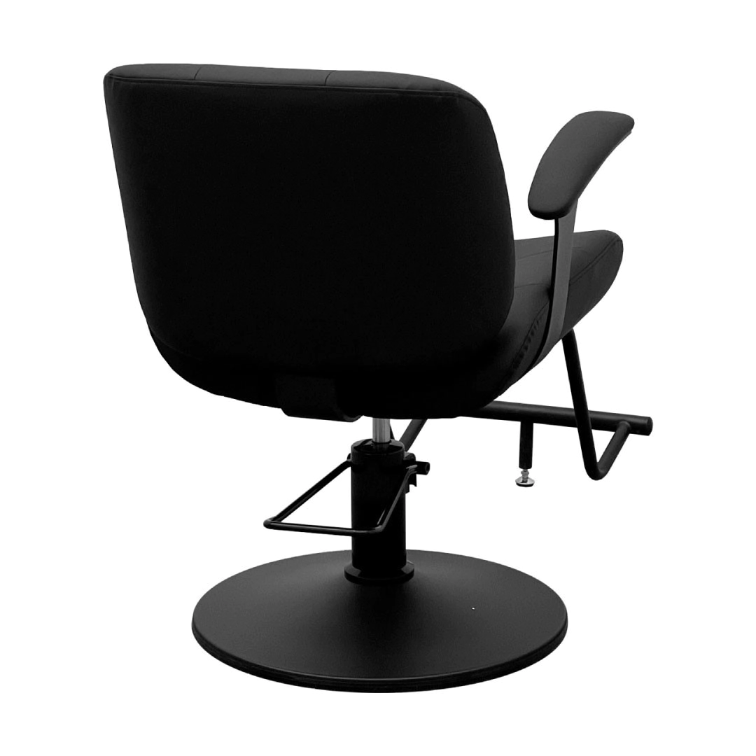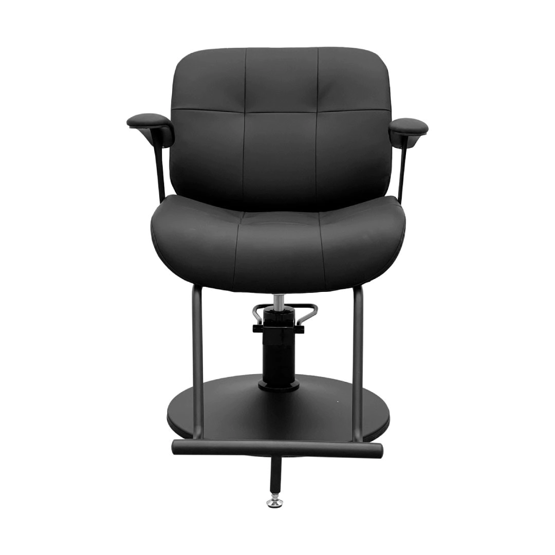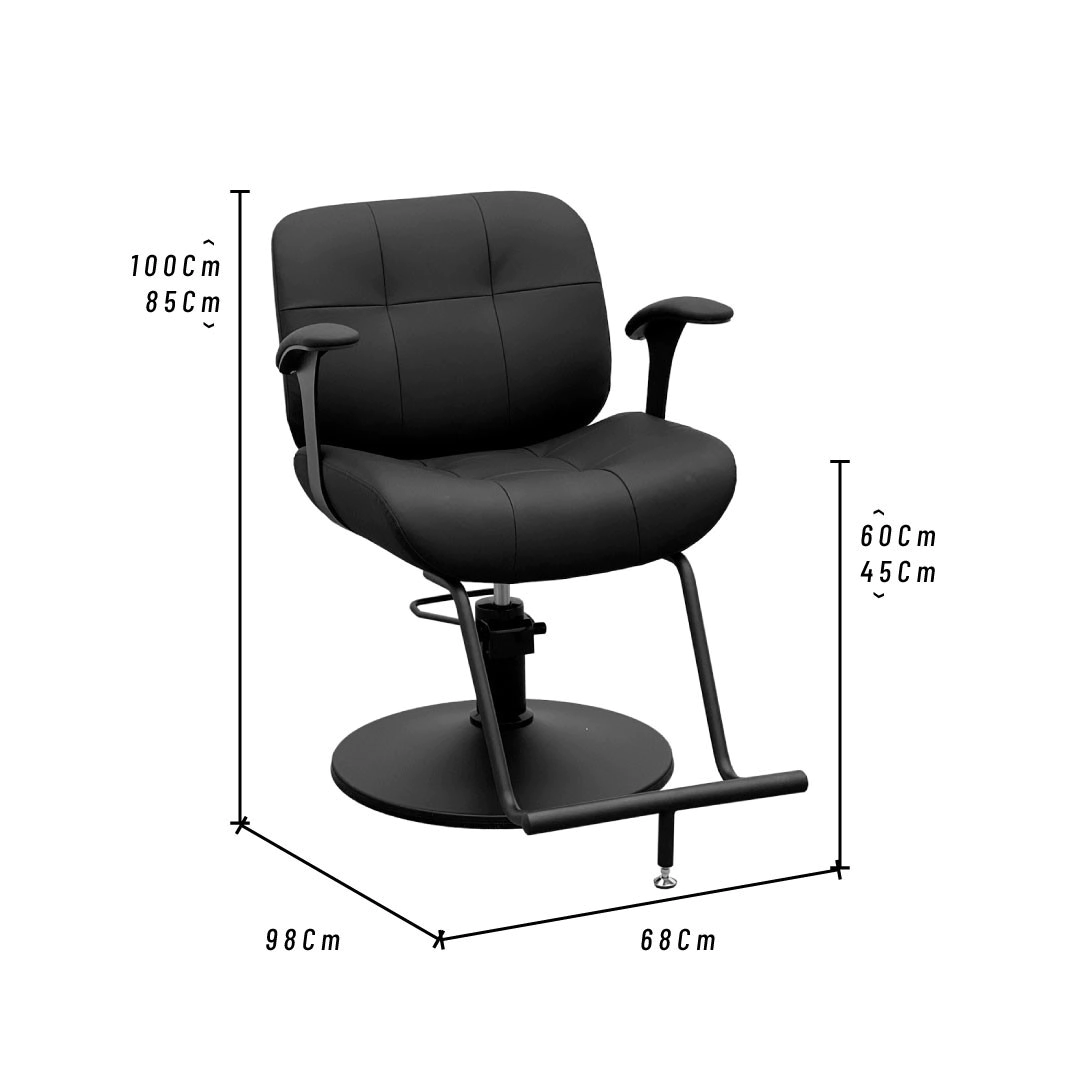 Este sillón es un modelo contemporáneo y ergonómico, ideal para salones de belleza o barberías. Está tapizado en cuero con un acolchado en patrón de cuadrícula que añade un toque de elegancia y comodidad. Cuenta con reposabrazos curvos y acolchados, un asiento amplio y un respaldo redondeado. La estructura de metal incluye una base circular con sistema hidráulico para ajustar la altura, y un reposapiés sencillo. Su diseño minimalista y funcional lo hace perfecto para un uso prolongado, combinando practicidad con un estilo moderno y sofisticado.