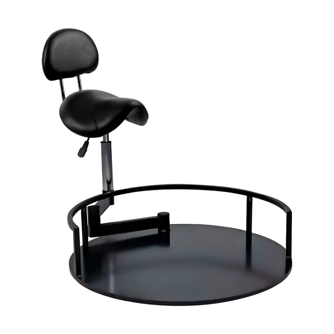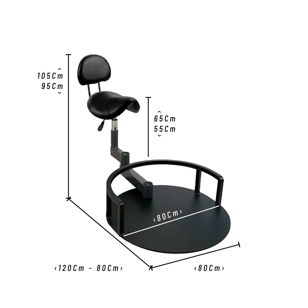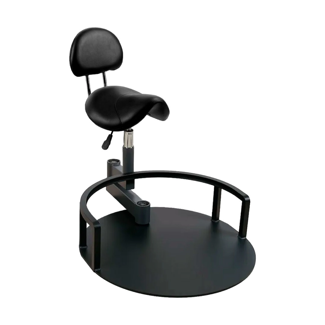 Diseñado para barberos y estilistas que buscan movilidad total sin sacrificar la estabilidad, este sistema orbital permite desplazarse suavemente alrededor del cliente sin necesidad de levantarse. Su diseño de asiento tipo montura promueve una postura erguida, reduciendo la fatiga en la espalda y piernas durante largas jornadas de trabajo.