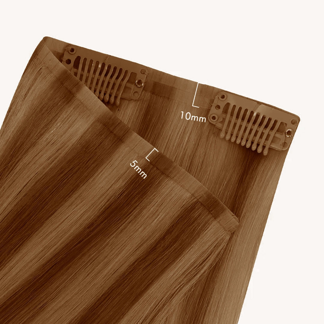 Nuevo diseño: trama de poliuretano ultrafina, utiliza nueva tecnología, lo que hace que las extensiones de cabello con clip de poliuretano sean más cómodas, más ligeras e invisibles en comparación con las extensiones de cabello con clip de trama de encaje. Puede combinar perfectamente con tu cabello.