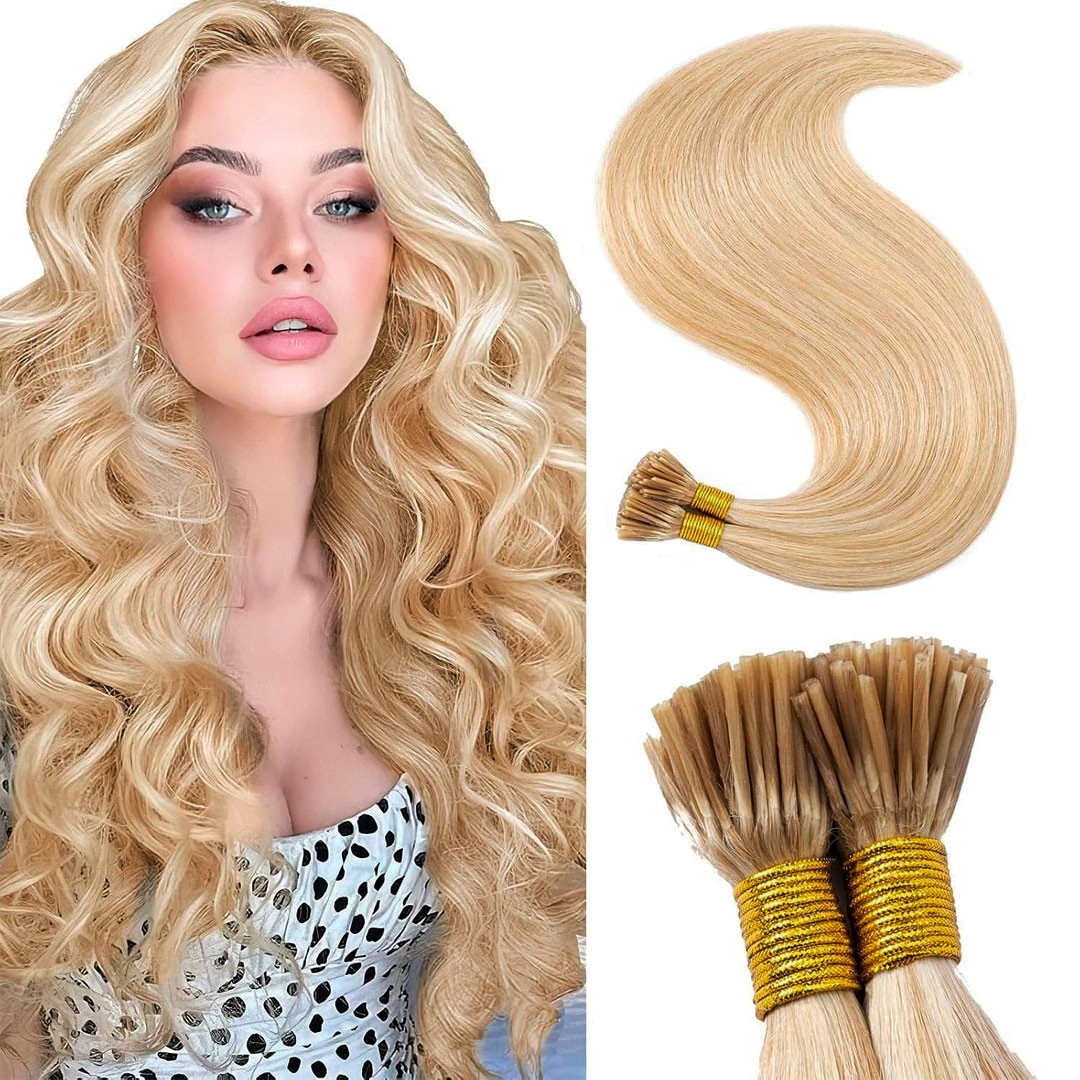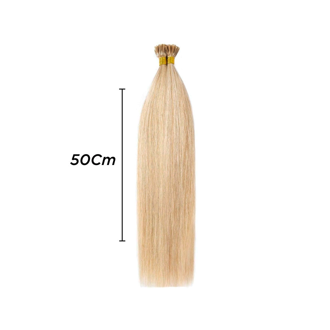 Extensiones de cabello humano de queratina con punta en I. Pegamento de queratina italiana duradero, de proteína natural que se adhiere firmemente a los extremos unidos y dura mucho tiempo. Ayuda a deshacerse del problema de desprendimiento. La vida del cabello suele durar de 3 a 6 meses. El cuidado profesional podría ayudar a aumentar la vida útil.