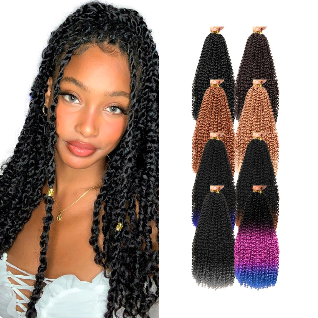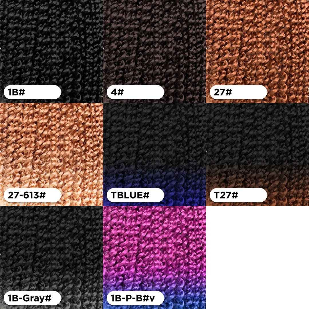 Hecho de fibra térmica ignífuga de baja temperatura de alta calidad. Cabello ondulado de ganchillo, aspecto natural y suave al tacto como cabello humano.