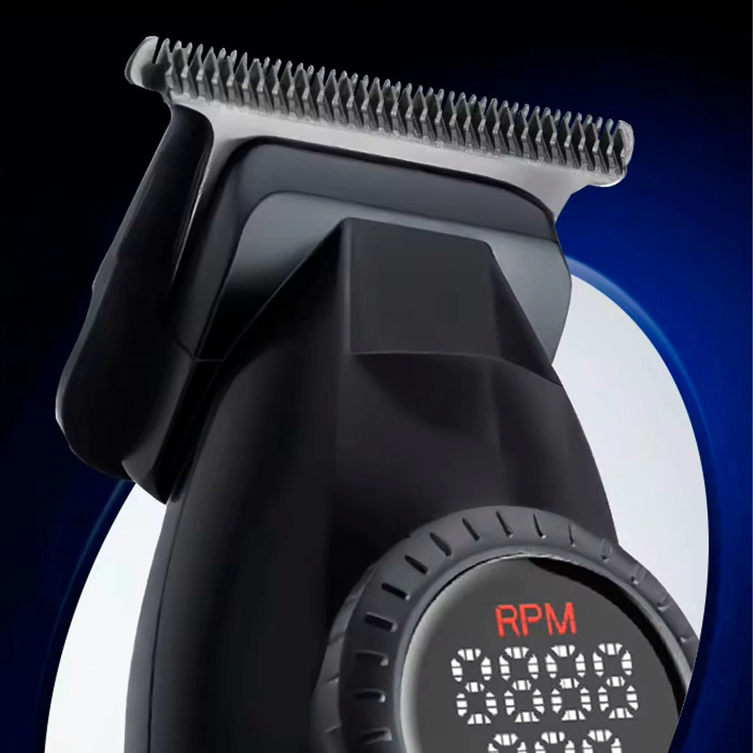 Es una herramienta profesional y versátil diseñada para recortar, perfilar y detallar barba, patillas, nuca y contornos con precisión y rapidez. Ideal tanto para uso en casa como en salones de barbería. Su diseño ergonómico combina estilo moderno con máxima manejabilidad, permitiendo un control perfecto incluso en las zonas más delicadas y durante sesiones prolongadas.