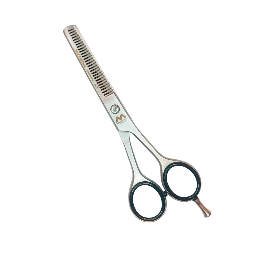 Fabricada en acero inoxidable de alta calidad, es una herramienta con hoja dentada que remueve hasta el 50% del volumen del cabello en cada corte, ideal para texturizar, reducir bulk y blending capas sin dañar el cabello ni dejar marcas visibles. Su diseño ergonómico incluye mangos offset con anillos ajustables y tensión regulable, que minimizan la fatiga en la mano durante sesiones prolongadas. Con un acabado metálico satinado para mayor durabilidad y resistencia a la corrosión, ofrece cortes precisos y suaves en cabello húmedo o seco. Perfecta para estilistas y barberos profesionales que buscan precisión y comodidad en su kit diario.