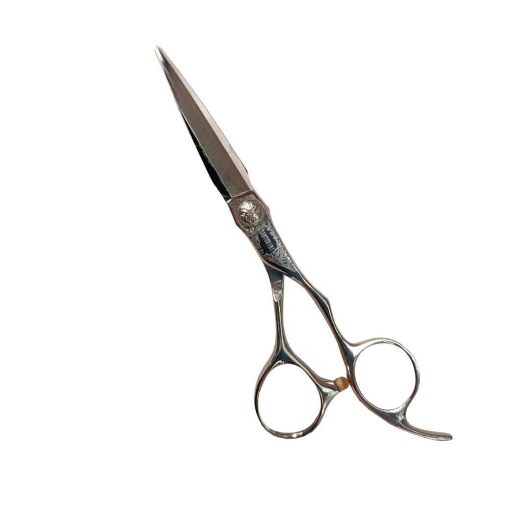 Esta tijera de acero 440C presenta un diseño elegante con un acabado metálico brillante, ideal para cortes precisos en peluquería. Fabricada con acero inoxidable de alta calidad 440C, conocido por su dureza y resistencia, garantiza durabilidad y un filo excepcional. Los mangos ergonómicos, con detalles ornamentales cerca de la unión, ofrecen un agarre cómodo y seguro, siendo perfecta para uso profesional.
