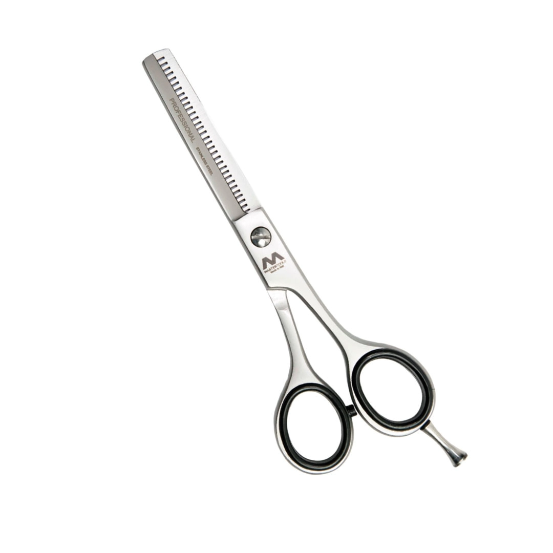 Fabricada en acero inoxidable de alta calidad, es una herramienta con hoja dentada que remueve hasta el 50% del volumen del cabello en cada corte, ideal para texturizar, reducir bulk y blending capas sin dañar el cabello ni dejar marcas visibles. Su diseño ergonómico incluye mangos offset con anillos ajustables y tensión regulable, que minimizan la fatiga en la mano durante sesiones prolongadas. Con un acabado metálico satinado para mayor durabilidad y resistencia a la corrosión, ofrece cortes precisos y suaves en cabello húmedo o seco. Perfecta para estilistas y barberos profesionales que buscan precisión y comodidad en su kit diario.